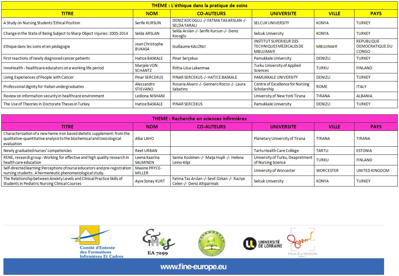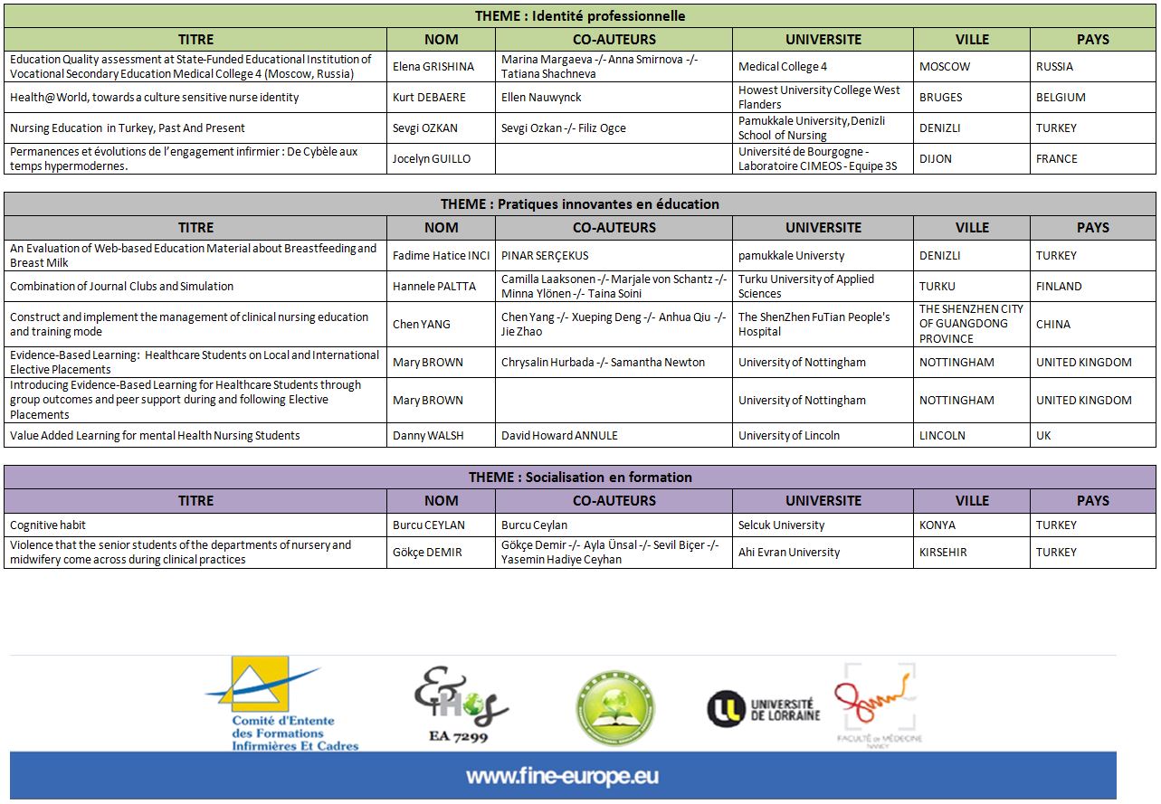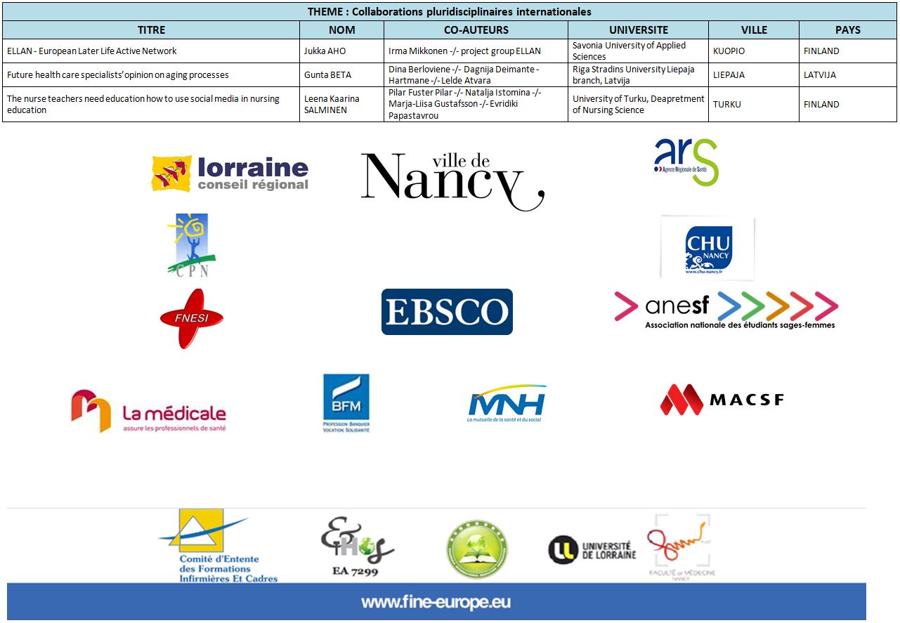 - 1.6.3 : Les échanges internationaux au profit de la formation en soins infirmiers.